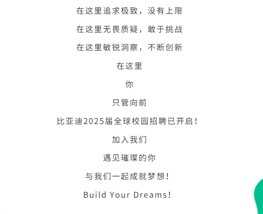 比亚迪2025届全球校园招聘正式启动!