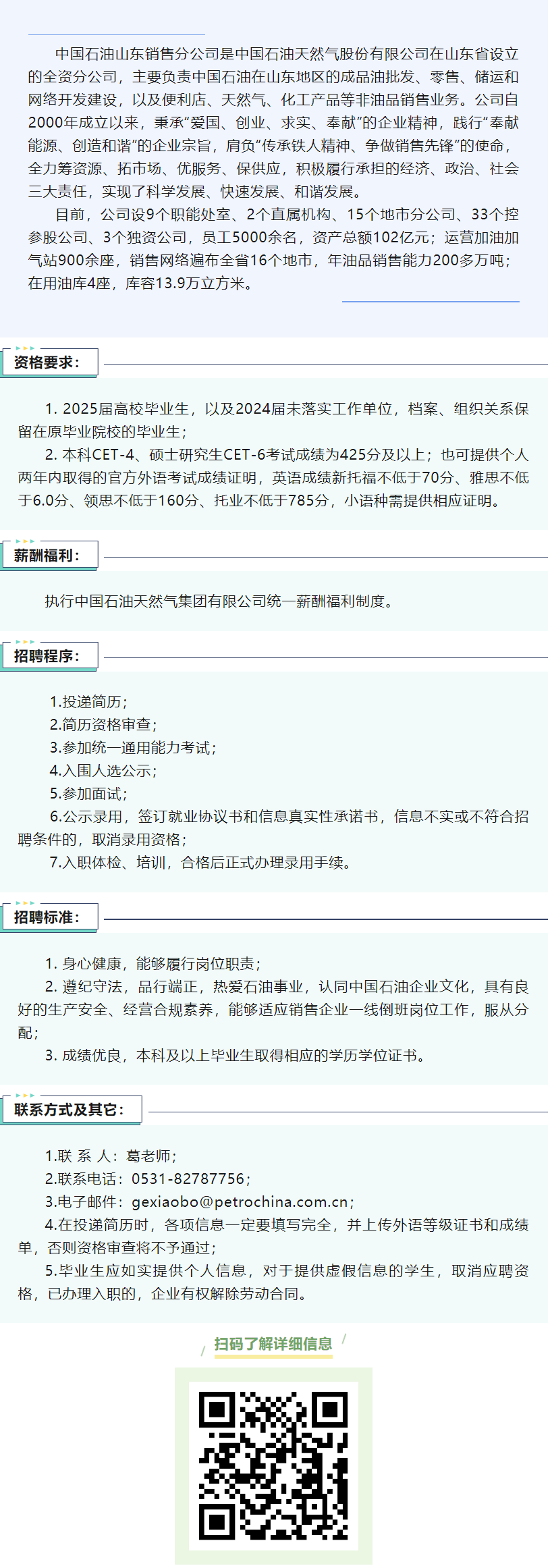 中国石油山东销售分公司发布招聘信息