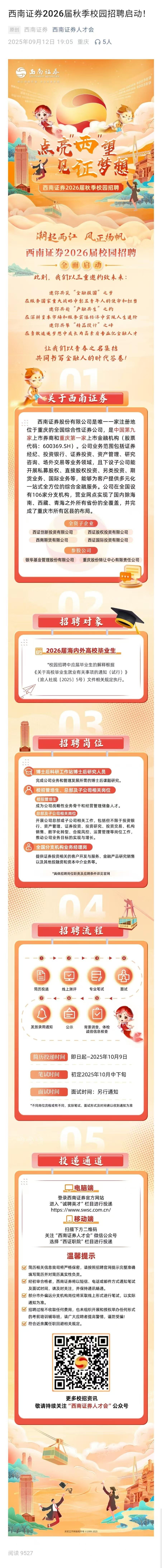 西南证券2026届秋季校园招聘启动